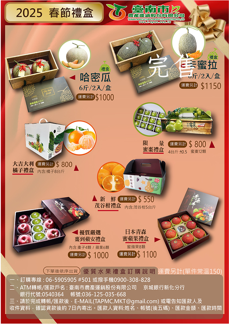 大宗採購、團體訂購、客製化需求、年節伴手禮請來電06-5905905#301-307,我們有專人誠為您服務。